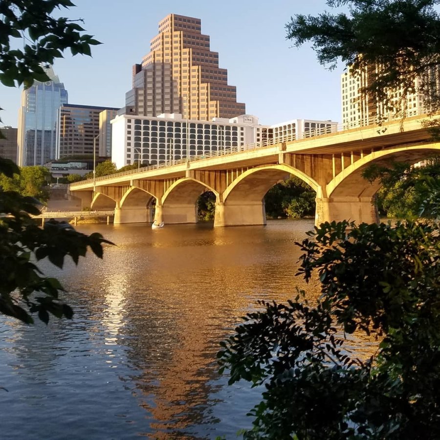Previous ImageNext Image Lovely Friday night light on the Congress bridge skyline reflection in the river deep inside the universe by bicycle